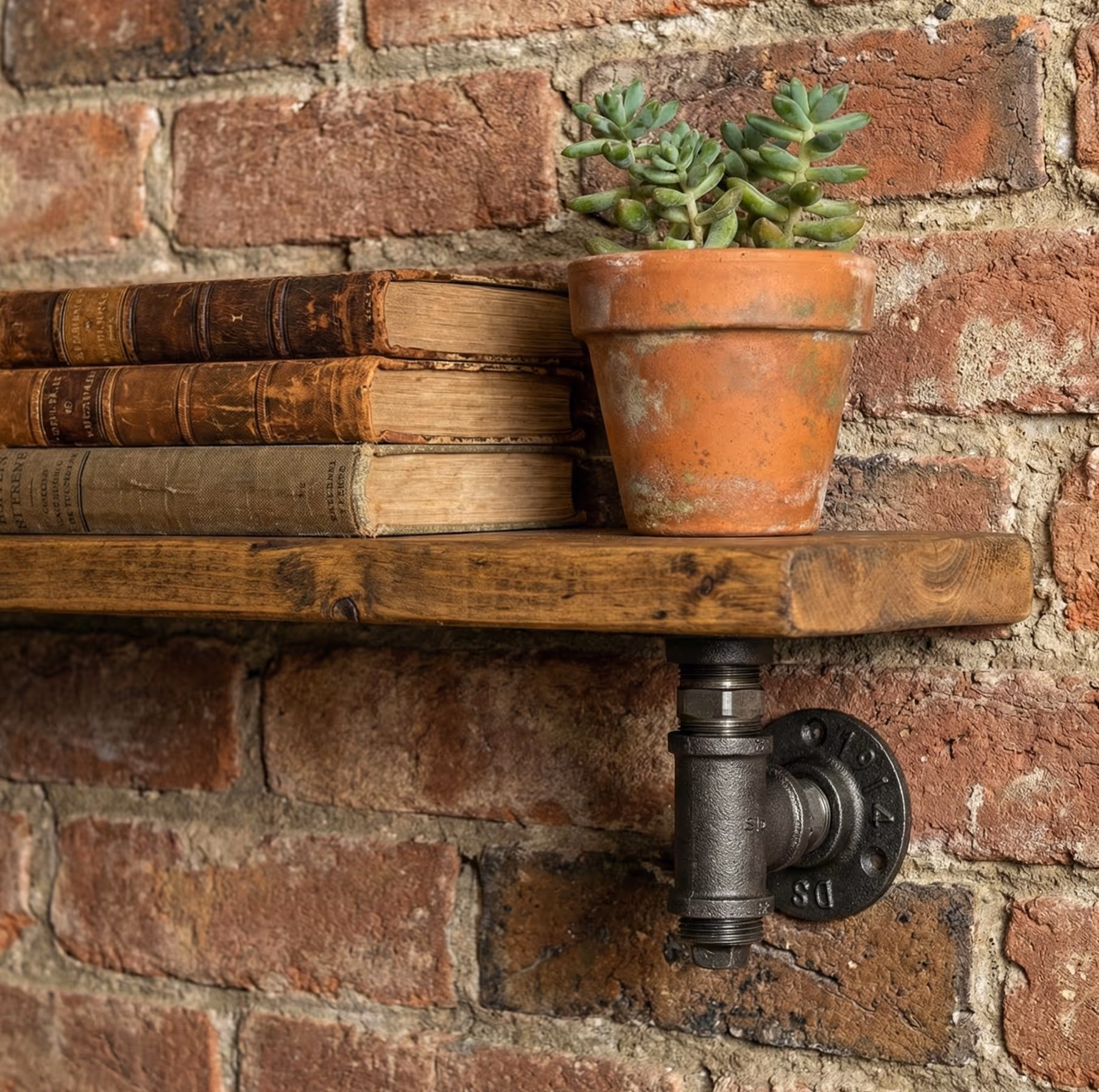 Designed to look as though it’s been lifted straight from a bygone industrial space, this bracket combines visual weight with genuine strength. The thick pipe profile makes it ideal for solid wood shelves, reclaimed boards, and utilitarian interiors where fittings aren’t hidden—they’re celebrated.